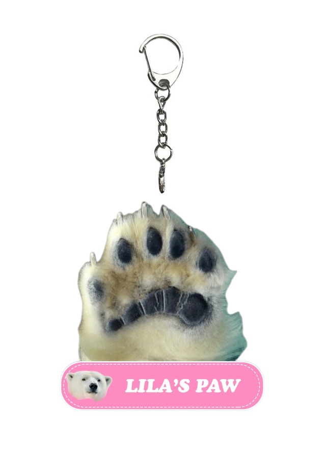 「ホッキョクグマ前足肉球シリーズ」 リラの可愛い前足・名前入りアクリルキーホルダーです。 サイズは縦5センチとなります。 ❃写真はCherioおよびC-Polar Dreamsに帰属します ❃写真の使用にあたっては、札幌市円山動物園へ『公園使用許可申請』の手続きが完了しています