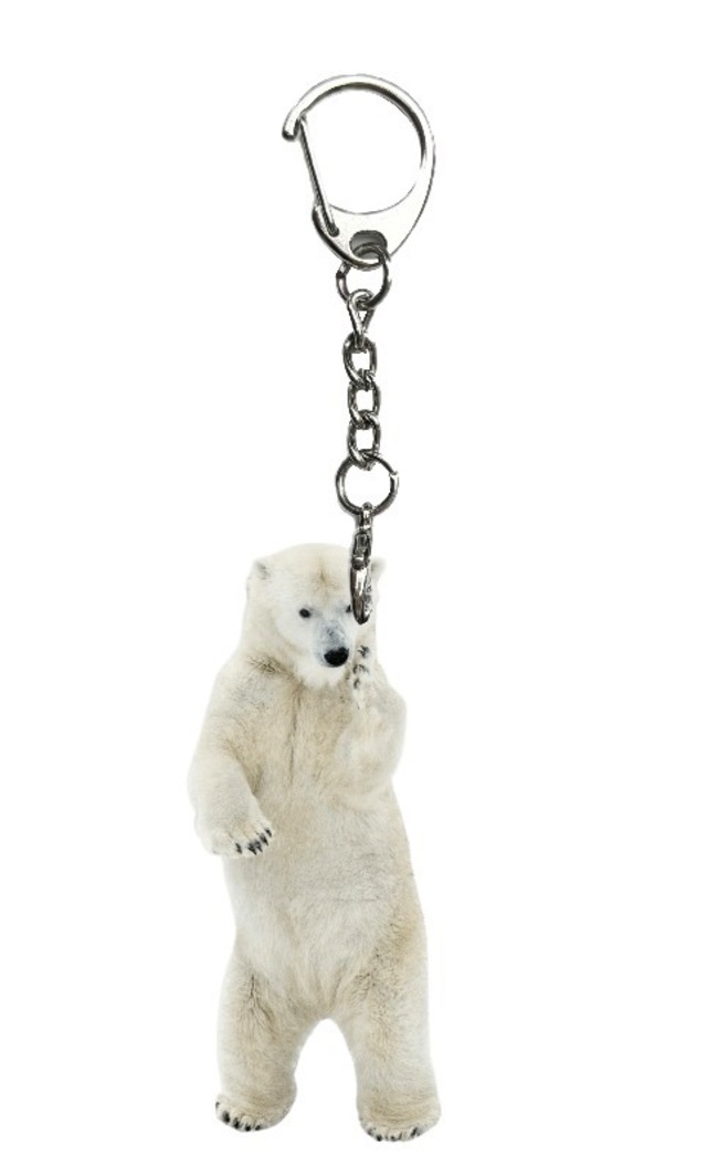 ホッキョクグマのリラの子グマ時代のアクリルキーホルダーです。 頬杖つきながら何を考えていたのかな? お客さんたちをじーっと見ていました♪ サイズは縦4センチとなります。 ❃写真の使用にあたっては、札幌市円山動物園へ『公園使用許可申請』の手続きが完了しています