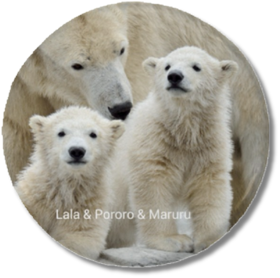 ホッキョクグマのララとポロロとマルルの円山動物園時代の缶バッジです。