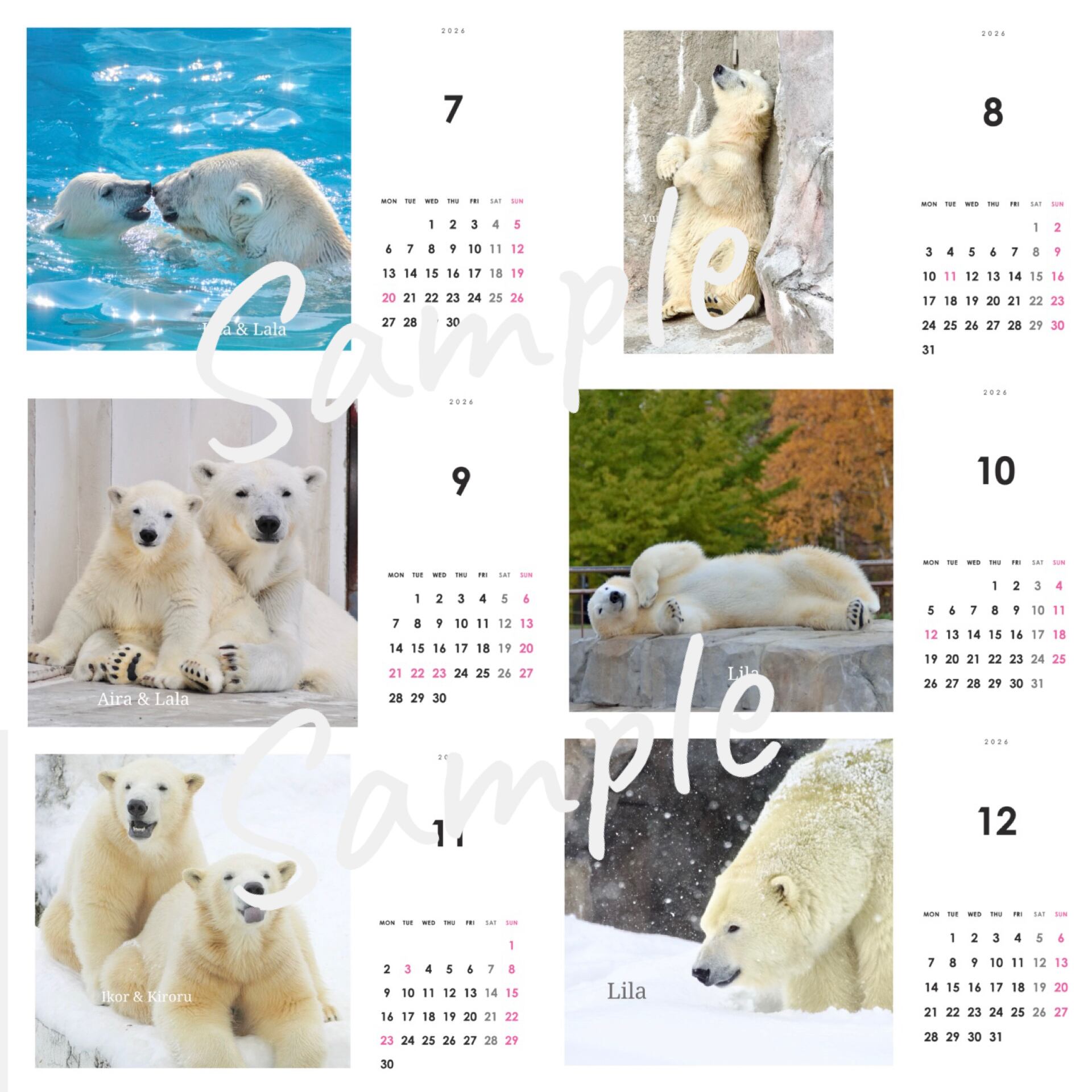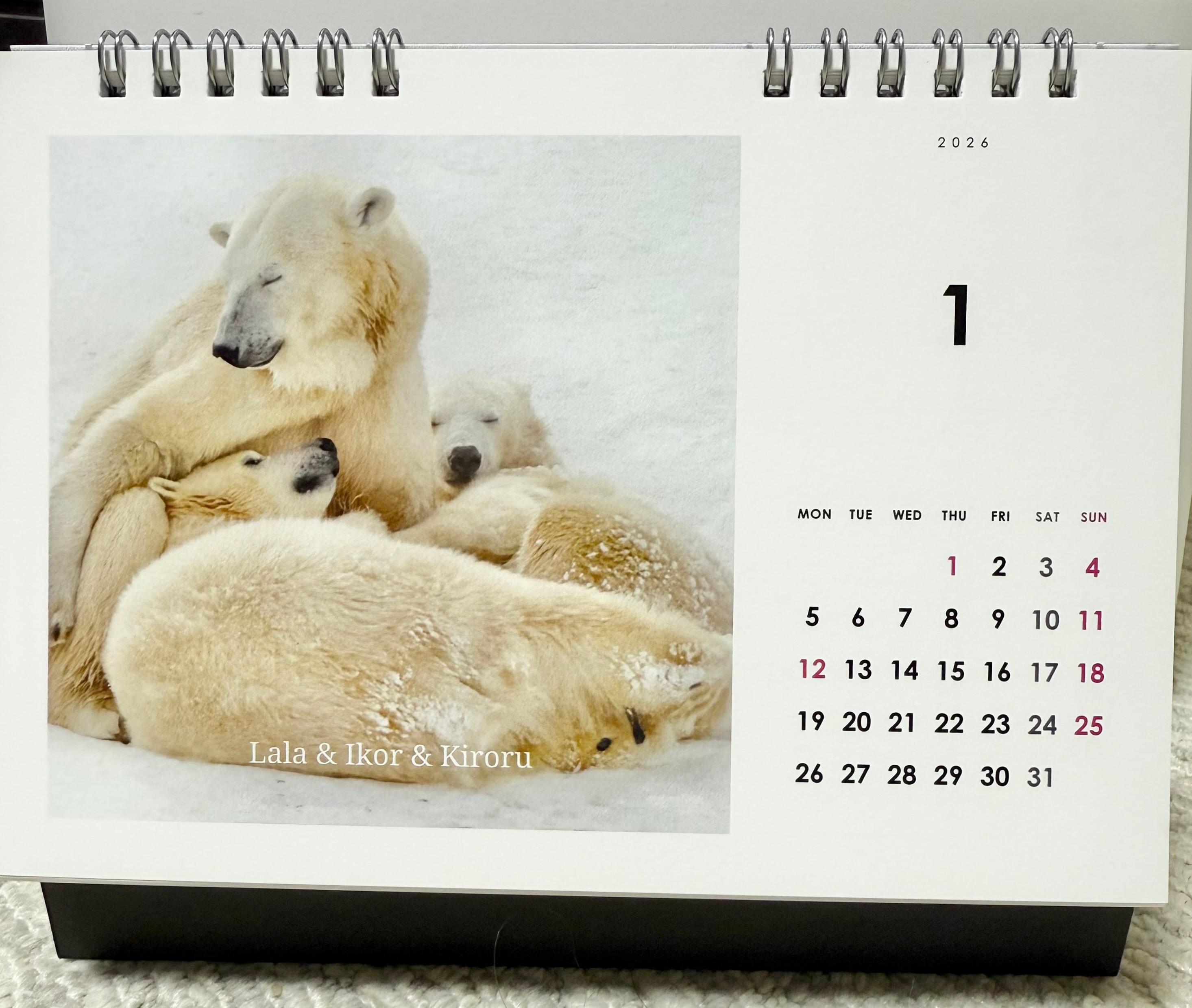 2026年 月曜始まり ホッキョクグマ卓上カレンダー