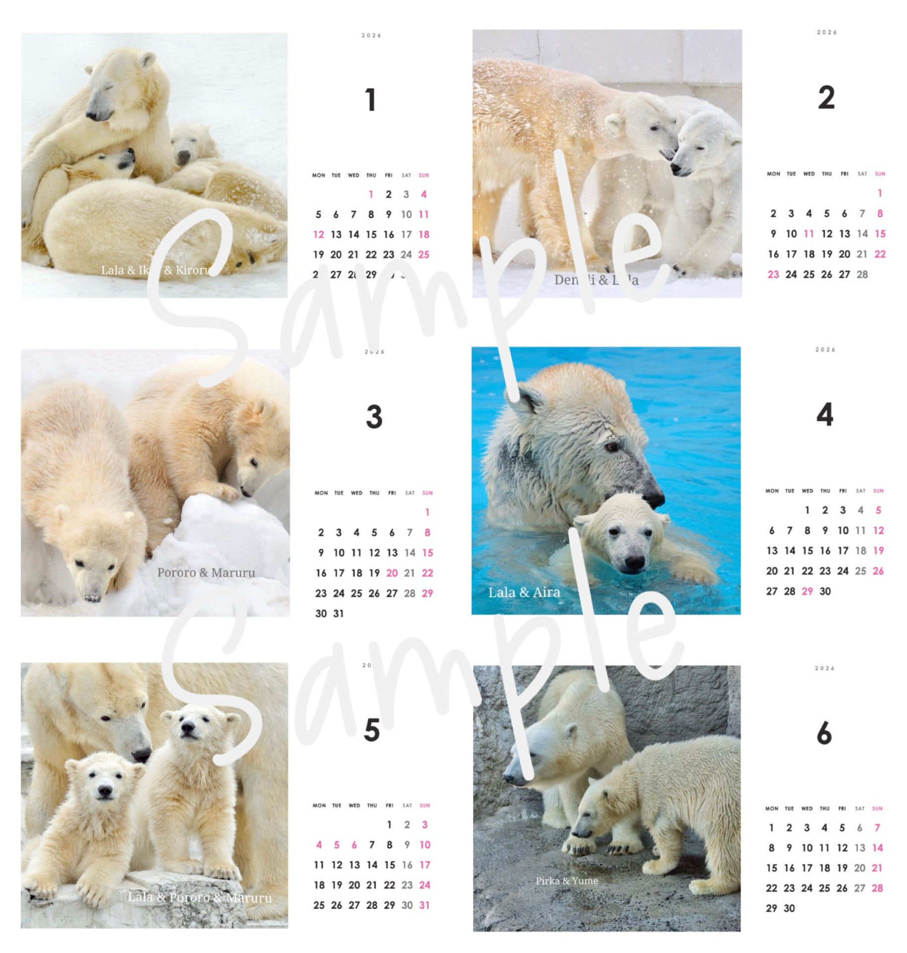 ホッキョクグマファミリー卓上カレンダー(月曜始まり)