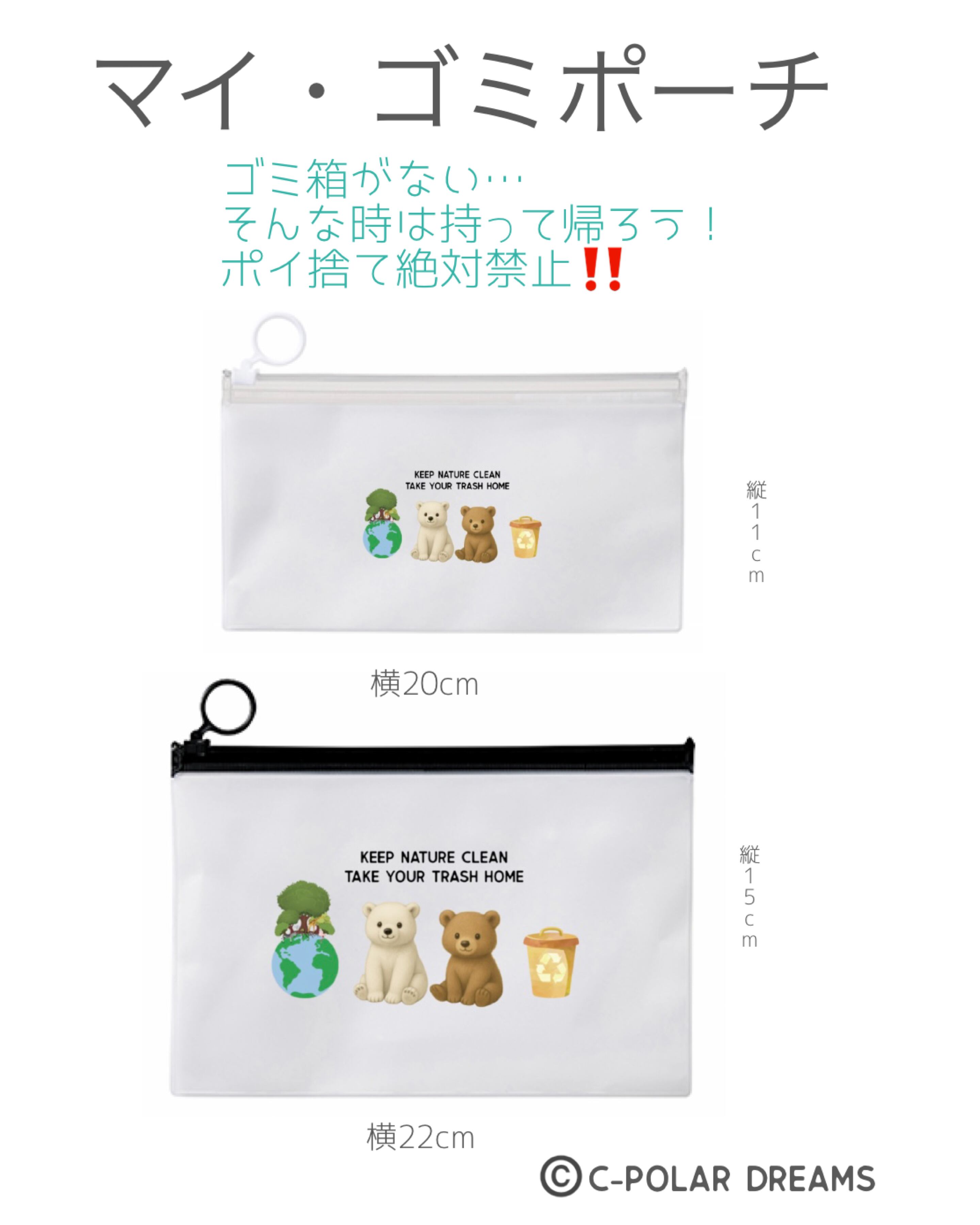 防水性で、水洗いできるポーチに入れて、近くのゴミ箱まで、または自宅まで持ち帰り、適切に捨てましょう
