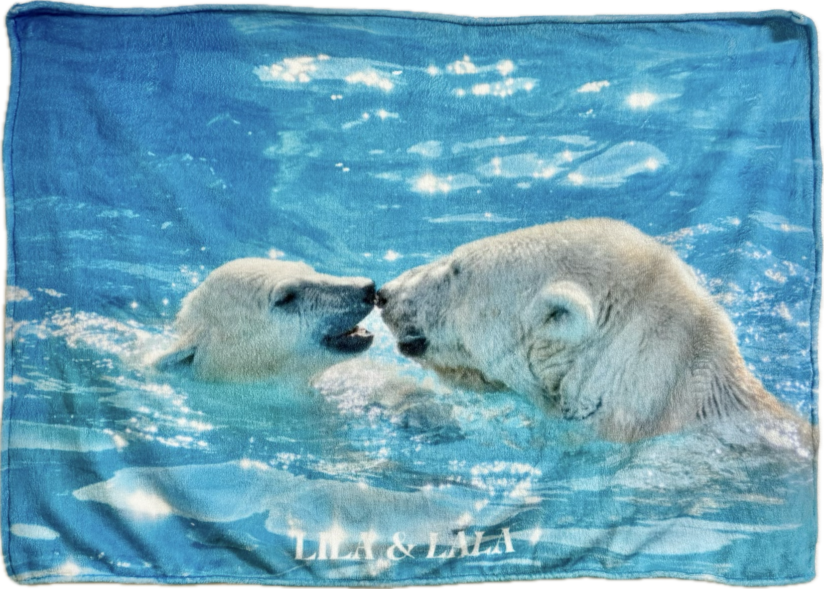 ホッキョクグマのララとリラ デザイン、ソフトフリースブランケットです。