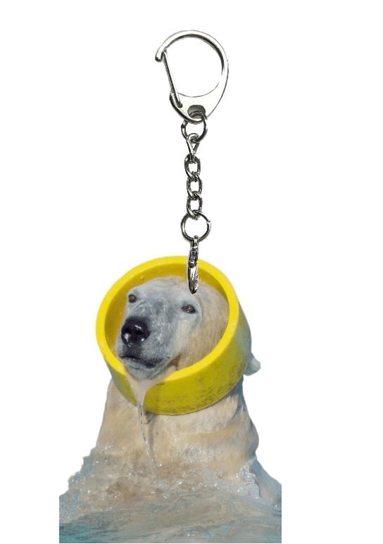 ガス管を被ってプールで遊ぶホッキョクグマのララです。