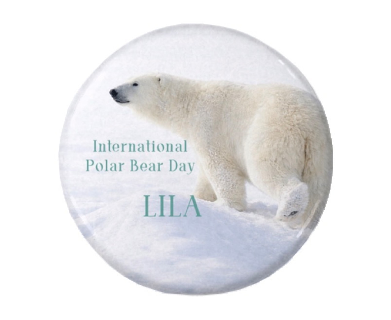 この缶バッジの売上の一部は、国際ホッキョクグマの日を制定した、カナダを本拠地としているホッキョクグマ保護団体、Polar Bears International へ寄付します。