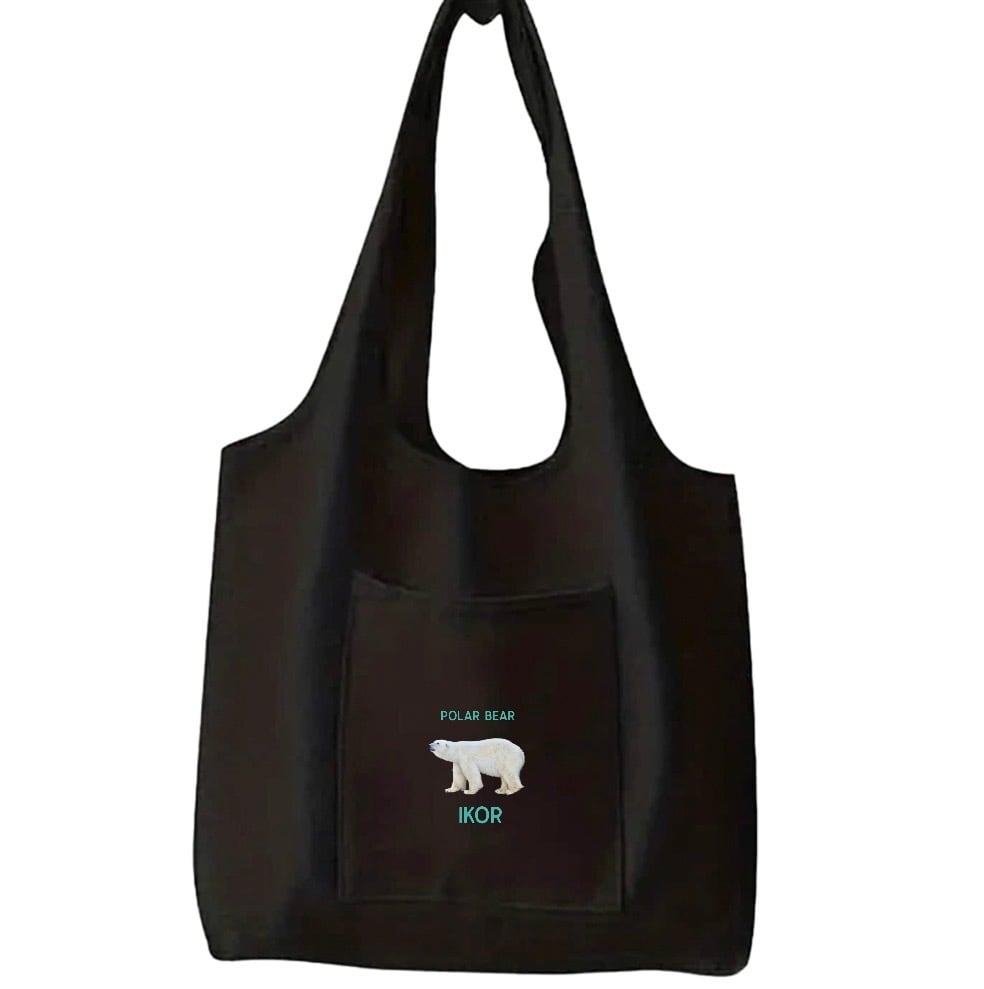 ニッコリなお顔でテクテク歩くおとなイコロのたっぷり容量トートバッグです